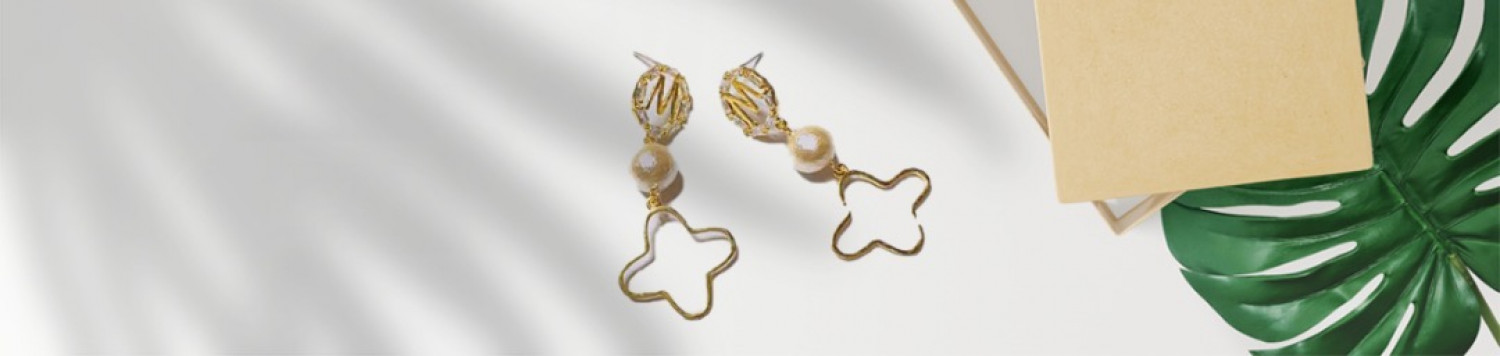 3IN1 SET SIMPLE RHINESTONE STUD EAARING WITH SMALL STUD CLOVER EARRING WITH TULIP FLOWER STUD EARRING - GOLD